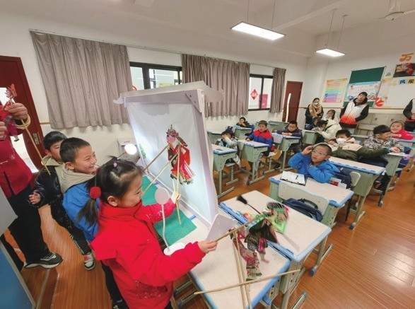 1月27日,上海市市长龚正在参加市十六届人大二次会议闭幕后的记者招待会上提到,上海今年在延续小学生爱心暑托班的基础上,又开办了150个爱心寒托班,并且很受欢迎。那么,小学生在首次亮相的爱心寒托班里到底有哪些收获?本报进行了实地探访。 玩皮影、做松饼、写春联、舞福龙、寻“龙门”……在今年首次举办的爱心寒托班里,各区各街镇让传统文化走进办班点,听非遗传人讲述民俗故事,让小学生们亲身体验和传承中华优秀传统文化,在春节即将到来之际深入了解年俗文化,丰富假期生活,同时,也帮助他们增强文化认同感与自豪感。 走一路看一路坐公交车寻文脉 “我们现在行驶的路线正是沿原来上海县城的护城河绕城一周,旧时称‘环城圆路’,各站点名称也大都是原来城门地名的延续。今天,我们就沿着古老的‘环城圆路’,共同来寻找上海老城厢的记忆。” 闻一闻跳一跳松饼舞龙话非遗 “希望通过这一系列丰富多彩的活动,让孩子们充分吸收优秀传统文化的‘养分’,以‘润物细无声’的方式带领青少年做优秀传统文化的‘小小传承者’,确保青少年们度过一个有意义的假期。” 玩一玩学一学皮影幕后家国情 “皮影戏展现了传统文化中独特的艺术形式和审美价值观念,孩子们通过体验皮影戏不仅可以感受到传统文化的魅力和美好,还可以培养他们的想象力、创造力,以及团队合作精神。” 你一笔我一画共创春联写年味 “最近的天气虽然很冷,但我们寒托班里的气氛却热火朝天,孩子们对写福字、写春联都很感兴趣,在学习传统文化的同时也了解了不少过年的习俗,提前感受到了浓浓的年味。” ■04-05 1月27日,上海市市长龚正在参加市十六届人大二次会议闭幕后的记者招待会上提到,上海今年在延续小学生爱心暑托班的基础上,又开办了150个爱心寒托班,并且很受欢迎。那么,小学生在首次亮相的爱心寒托班里到底有哪些收获?本报进行了实地探访。 玩皮影、做松饼、写春联、舞福龙、寻“龙门”……在今年首次举办的爱心寒托班里,各区各街镇让传统文化走进办班点,听非遗传人讲述民俗故事,让小学生们亲身体验和传承中华优秀传统文化,在春节即将到来之际深入了解年俗文化,丰富假期生活,同时,也帮助他们增强文化认同感与自豪感。 青年报记者 蔡娴 本版摄影 青年报记者 吴恺 黄浦区 走一路看一路,坐着公交寻文脉 乘坐11路公交车环线,从“老城厢城门”“老西门”“石库门”三重门出发,围绕着老西门这片具有深厚历史底蕴的老城厢探寻“门”的故事……黄浦区老西门街道此次为爱心寒托班设置了一项特色寻访活动,由老西门街道团工委携手久事公交集团团委共同发起了“环城寻门记”,记者也跟着孩子们乘坐公交车开展“寻门之旅”,体验了一次特别的City Walk。 “落雨了,打烊了,小巴辣子开会了。排排坐,听故事,吉星高照跃龙门。龙门书院历史久,中外知名交关灵,上海之源有西门,海派文化龙门邨……”在开启寻门之旅前,孩子们还饶有仪式感地表演了原创沪语童谣《龙门谣》,传递城厢历史和街区治理的暖心故事。 公交车缓缓驶离敬业初级中学办班点,从老西门站出发,将顺时针绕圈,途经老西门、小北门、老北门、新北门、大东门、小南门等。“我们现在行驶的路线正是沿原来上海县城的护城河绕城一周,旧时称‘环城圆路’,各站点名称也大多是原来城门地名的延续,多年来线路和设站几乎没有变更,因此,这也是一条‘永不延伸’的线路。今天,我们就沿着古老的‘环城圆路’,共同来寻找上海老城厢的记忆。”每到一站,青年宣讲员吉老师都会为孩子们讲解老城厢的历史和关于“门”的故事。 在来到小北门站时,孩子们还在老师和志愿者的带领下,下车零距离观赏了大镜阁的古城墙。“明嘉靖时期,倭寇连续五次从海上入侵上海,烧杀掠抢。这一年,为抵御倭寇入侵,上海就在黄浦江边筑起了城墙……”五年级学生沈栩禛曾在2023年5月,参加过由街道组织的“环城寻门记”,现在仍记忆犹新,因此他自告奋勇地为同学们做了一段讲解,他说自己非常喜欢参加类似的体验活动,让自己有机会了解“藏”在身边的历史和文化。 “习近平总书记曾说,一个城市的历史遗迹、文化古迹、人文底蕴,是城市生命的一部分。这一趟‘寻门之旅’带领孩子们深入了解藏于‘门’后城市变迁的老上海文脉,洞见中华民族自强不息、奋力追赶、追求复兴的奋斗之路。”老西门街道团工委书记王元峰表示,通过沉浸式体验老城厢深厚的文化底蕴,见证如今的旧区改造、历史建筑保护更新等,希望带领这些新生代寻访者们重拾老城厢的百年记忆,领略人文魅力,共同传播与传承文化内涵。 浦东新区 闻一闻跳一跳,松饼舞龙话非遗 在推出了42个爱心寒托班办班点的浦东新区,整合各类资源形成“中央厨房”,向办班点配送丰富多彩的活动。各街镇还挖掘区域特色资源,形成“一街镇一特色”“一班一亮点”,让孩子们度过一个快乐、充实的寒假。 龙身蛇形太极拳、十二生肖泥塑、制作新年龙灯、非遗高桥松饼……高桥镇爱心寒托班首次推出了“高小桥”国风艺趣系列活动,让孩子们每天都能体验一种传统文化。其中,最具特色的是带领孩子制作高桥松饼。“这一口酥香,是高桥老饕们记忆里的美味,是高桥小朋友们冬日里的欢乐。”高桥镇团委副书记