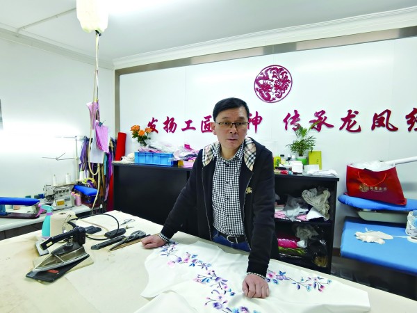 与龙字相关的非遗中,龙凤旗袍算是知名度较高的。2010年,“龙凤旗袍制作技艺”被评为国家级非物质文化遗产,2012年,1965年出生的徐永良成了这项国家级非遗的第三代传承人。 20岁进企业时意气风发,现年59岁的徐永良在龙凤旗袍度过了他最宝贵的39年的职业生涯。作为公司的老师傅,他对龙凤的前世今生如数家珍。 青年报首席记者 范彦萍 一丝一线中的工艺与功夫 踏入江宁路上的工厂,老师傅徐永良正在精心熨烫一块面料。“旗袍的真丝面料厚度约为30姆米。如果不进行烫衬处理,绣花的针脚很容易起皱。”看着靠近观察的人,他抬头笑着解释。 懂服装的人都知道,版型在前,工艺在后。通常大家夸奖一件衣服,一开口肯定是“这件衣服嗲”,其实指的就是这件衣服的版型真不错,随后才会说“做工也考究”。 徐师傅手中的两片真丝面料,看似工艺简单,实则对技艺要求极高。“只有前后两片的旗袍制作难度最大,因为分割线少,全靠归拔技巧。相反,分割线多的反而相对容易制作。旗袍的两个开叉口必须控制在五厘米左右,保持垂直。” 他展示着归拢的技艺,同时说道:“你知道吗,我们龙凤出品的旗袍从正面看是看不到后片的。如果能看到,说明归拔技艺没有掌握好。” 龙凤旗袍自1936年创立以来,一直传承着独特的“镶、嵌、滚、宕、镂、雕、绣、盘、绘”九大制作工艺。所有传承人都严格遵守着这些传统工艺。 徐师傅带领记者来到一间展示馆,墙上悬挂着众多盘扣类作品。“你看,盘扣的造型要富有灵动之美。同样是一朵花,有的栩栩如生,有的则显得呆板。” 除了盘扣之外,绣花工艺也极为讲究。徐永良介绍说:“我们的旗袍都是请苏州绣花厂的工人手工绣制的。手绣的花朵,面积较小的需要20天左右完成,稍大的则需要30天左右,而超大的花朵甚至需要两个月左右的时间。有些绣花面积太大,需要多人合作完成。在厂里,年轻人的绣工费用是25元/小时,老年人是20元/小时,而老太太则是15元/小时。一件衣服的绣花成本是按照小时来计算的。” 他指着一张屏风上的花瓣说:“花瓣的绣制时间可长可短,一个小时或者一天都可以完成,但做工却有着天壤之别。手工绣制的花朵色彩鲜艳、立体感强、质地柔软;而机器绣制的则颜色较为暗淡,涤纶线较为粗糙、质地较硬。此外判断绣工优劣还要看针脚是否短。”徐永良解释道,手绣通常使用真丝线,一根真丝线包含36根细丝,可以劈分成16丝、8丝、4丝等不同粗细的线条进行绣制。 展示馆内还有一面墙上展示着许多民国时期佳人穿着旗袍的老照片。“旗袍的领子要挺括有型这样才能更好地衬托出穿着者的身材和气质。”他指着照片中的张曼玉说:“像她在《花样年华》里穿的旗袍领子就有2寸高,非常显身材。一穿上旗袍,衣服本身就会约束你的举止动作,让你不自觉地保持优雅。你看那些唱评弹的演员,他们的腰杆总是挺得笔直,只坐椅子的三分之一。” 一裁一剪中的坚守与匠心 龙凤旗袍历经近九十年风雨,依旧吸引着新老粉丝,客户忠诚度极高。徐永良师傅介绍说:“它就像国外的LV一样,经久不衰。” 1936年,裁缝师傅朱林清创立“朱顺兴”中式服装店,这便是龙凤旗袍的雏形。随着生意兴隆,朱林清逐渐吸纳周边服装店的师傅,扩大规模。1959年,“朱顺兴”联合四家苏广成衣铺,正式更名为上海龙凤中式服装店,至今仍保持着前店后工场的传统模式。 龙凤旗袍坚持手工制作,量体裁衣,需测量人体36个部位的尺寸。徐永良师傅透露,他在四十岁左右时技艺达到巅峰,而如今凭借丰富经验,他能如老中医般“望”而知体型,即使客人远在外地,只需通过视频捏捏料子,他便能准确判断需调整的尺寸。 在龙凤旗袍的漫长岁月里,徐永良曾为无数名人量尺。他强调,穿旗袍是否好看与身材并非完全相关,更在于个人气质是否相配。 龙凤旗袍不设现货,每件旗袍皆需量身定做。“我们追求的是高端订制,注重质量与传统裁剪工艺的传承。若贪快失质,便会失去市场。”徐永良表示。在网购盛行的当下,虽然99元包邮的改良款旗袍泛滥,但龙凤旗袍仍坚守传统,以匠心独运赢得市场一席之地。 在徐永良看来,龙凤旗袍的长盛不衰得益于国家对非遗和中国传统文化的重视以及市民生活水平的提高。随着越来越多人追求高品质生活,龙凤旗袍的高端订制服务正成为越来越多旗袍爱好者的首选。 “龙凤”品牌的前世今生 2011年,“龙凤旗袍手工制作技艺”被正式列入国家级非物质文化遗产名录,且在2018年5月,更是被国家多部委联合遴选入首批国家传统工艺振兴目录,彰显了其无可替代的文化与艺术价值。 多年来,龙凤旗袍已然成为海派文化对外展示的一张瑰丽名片。它曾亮相于第17届法国卢浮宫国际文化遗产展、2010年上海世博会、2015年米兰世博会,并在2019年1月的新华社海外直播中绽放光彩;更值得一提的是,2018年5月11日,它作为上海品牌的唯一代表,在首届中国自主品牌博览会上进行了主题展演;此后,又相继参与了中国进口博览会和中国消费品博览会,向世界展示了中华传统服饰的无穷魅力。 自2019年迄今,龙凤的多款文创产品屡获殊荣,被评为上海特色优选伴手礼、进博会外事伴手礼,同时还荣获最受女性消费者欢迎和最受外国消费者欢迎的伴手礼等称号。 现今的龙凤旗袍旗舰店,坐落于陕西北路老字号专业街。历经近90年的风雨洗礼