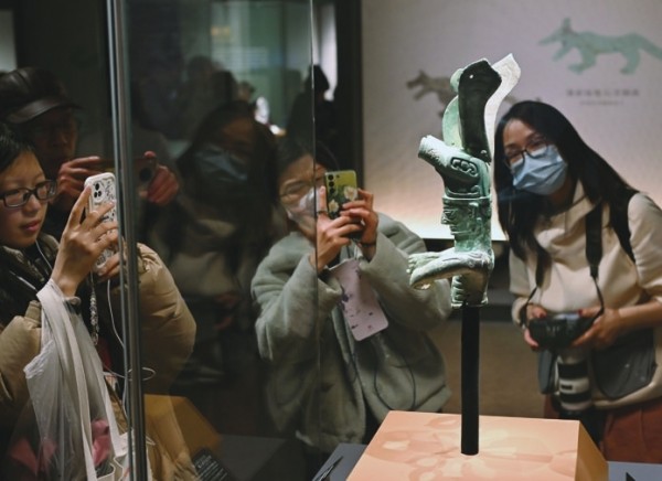 春节期间,众多市民和游客来到上海博物馆东馆,参观“星耀中国:三星堆·金沙古蜀文明展”,在对国宝文物的探索中感受别样年味。