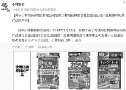 小林制药红曲风波持续发酵。3月29日,又有1人在服用小林制药公司生产的红曲保健品后死亡,至此,致死人数升至5人。与此同时,还有上百人因为肾脏健康问题而住院治疗。 小林制药此次涉事的保健品,事实上均未在中国内地市场销售,没有获得国内“健字号”的保健品认定。但问题是,这些被国内消费者认为是“保健品”乃至“网红神药”的产品,经跨境电商、游客等带入了国内消费者的家庭。小林制药事件引发日本国内外广泛关注同时,也为消费者敲响警钟——盲目服用保健品风险不容忽视,切莫将其与健康生活划等号! 小林制药产红曲致命? 根据小林制药28日发布的通告,两名遗属27日称两名死者生前都曾服用该公司生产的红曲胆固醇颗粒。一名消费者死亡时伴有肾脏疾病症状,另一名从2021年开始服用红曲胆固醇颗粒。 小林制药22日宣布紧急召回该公司三款含红曲成分保健品,原因是日本有消费者服用该公司含红曲成分保健品后出现肾脏疾病等健康问题。该公司称,出问题的原因可能是产品混入此前“意想不到”的来自霉菌的成分,但尚未弄清该成分究竟是什么。 截至目前,因服用问题产品住院的人数也已超过百人。厚生劳动省已要求大阪市健康局依法对小林制药三款含红曲成分保健品采取废弃等措施。 小林制药生产的红曲原料除供自家生产保健品外,还出售给其他公司用于酿酒及食品制造等。调查显示,“意想不到”的成分存在于小林制药2023年4月至12月期间生产保健品的原料中。目前使用小林制药产红曲原料的食品和调料召回范围已扩大至日本全国。 由于小林制药生产的红曲原料超过80%出售给其他公司,不少民众开始担忧是否已服用了含有问题成分的其他公司产品。社交媒体上一些网友留言表示,“红曲色素也让人不安”“暂时避开含红曲的食品”等。一些生产商急忙和小林制药撇清关系,声明本公司生产和销售的产品完全没用到小林制药的红曲原料。 小林制药在召回产品上的拖延也引发批评。日本厚生劳动大臣武见敬三在26日的新闻发布会上说,从最早的健康问题报告到小林制药宣布召回产品间隔两个多月时间,在此期间该公司并未向政府提供相关信息,这“不得不说很遗憾”。 生产商评估产品安全和功能? 随着小林制药问题产品的受害人数不断增加,负面影响可能进一步扩大,日本有关功能性标示食品的评估机制再次引发关注。 我们口中常说的“保健品”在日本被称作保健功能食品,分为特定保健用食品和营养功能食品两类,2015年后又新增一类功能性标示食品。这类食品在产品包装上标示保健功能,但政府不审查,也不需要政府相关部门的许可。由生产商根据政府制定的一些规则,对产品的安全性和功能性进行评估,并在上市的60天前向消费者厅备案。 虽然这一制度也有相应措施来保障产品的安全性和功能性,但评估等责任主体是生产商,在实际操作过程中仍然可能出现“偷工减料”,例如安全性试验没有严格遵照准则。 对此,专家建议相关部门进一步完善标准和评估机制,同时呼吁消费者提高风险意识。 保健品不是药! 据报道,近年来保健类商品逐渐成为小林制药在日本国内市场的利润大头。与化妆品一同陈列在药妆店的保健品也是深受访日游客喜爱的“日本特产”。然而,保健品是将相关成分浓缩后制成片剂或胶囊等,没有专业医师把关,每天持续服用,会容易摄入大量相同成分,一旦其中含有害成分,健康风险也会增大。 日本临床营养协会药剂师千叶一敏告诉记者,购买保健品时,除了包装正面,更应重视看背面的成分表。但对语言不通的外国游客来说,能看懂成分表的可谓少之又少。只靠社交媒体平台的推荐、软广便跟风购买的消费者不在少数。 千叶说,日本国内曾报告多起因服用从海外购买的保健品而出现健康问题的案例,这些消费者多通过社交媒体平台从个人手中购买所谓具有减肥效果的产品,结果出现贫血、食欲不振、倦怠无力等症状。他建议,在选购相关产品时不要一味相信网友评价。 中国国家市场监督管理总局也曾发布保健食品消费提示,提醒消费者保健食品是食品,而不是药品,不能替代药物。消费者特别是中老年人、疾病患者,切勿听信不法商家对保健食品的虚假广告和夸大宣传,更不要将保健食品用于疾病治疗。据新华社电