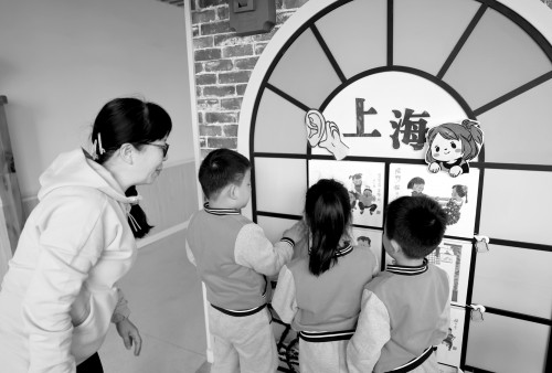 海派童谣串烧、沪语rap、沪语诗朗诵……日前举行的第五届“沪语小达人”活动颁奖典礼上,来自多所学校的小囡们展演的一个个生动有趣的节目让人惊艳。这些“沪语小达人”是如何炼成的?上海方言文化的魅力和历史底蕴在新一代少年儿童中是如何传承发扬的?青年报记者走进校园进行了实地探访。 青年报记者 刘春霞 蓬莱路幼儿园 创设学习沪语环境 让小囡讲一口标准“上海闲话” “现在是春天了,我们一起来念一念《春晓》……”上午,青年报记者走进黄浦区蓬莱路幼儿园大(1)班的教室,只见孩子们正在和蓬莱部大班年级组长吴丽明老师一起用沪语念古诗,古诗朗朗上口,稚嫩的童声配上吴侬软语,让人耳目一新。 除了念古诗,孩子们还欢快地玩起沪语游戏唱起沪语童谣,每个人都兴致高昂。在小朋友们念完一首《静夜思》后,吴丽明拍手鼓励:“讲得哈好!”“我觉得用上海话念古诗很好玩!”佑佑同学蹦蹦跳跳地说。 “我们幼儿园地处老城厢,毗邻城隍庙,有着浓浓的弄堂生活气息,很多老师都是在老城厢长大,所以沪语传承这块我们很早就开始做了,资源也是得天独厚。”吴丽明说,蓬莱路幼儿园的孩子基本都来自老城厢,家中有讲上海话的氛围和习惯,所以不少孩子入园时的沪语水平就挺高。“从学习语言的规律来说,越小培养孩子对沪语的兴趣越好。”她认为,孩子们日常生活中接触普通话的机会比沪语多得多,所以为他们创设沪语环境非常重要。 也正因此,蓬莱路幼儿园从多方面入手,为孩子们创设沪语环境,帮助他们讲一口标准的“上海闲话”。幼儿园邀请上海滑稽剧团的沪语老师进校园,每周一次与小朋友“一道来讲上海闲话”。“上海的绕口令怎么讲?”“上海的数字‘2’到底有几个发音?”“上海话还可以念古诗!”生动有趣的互动形式和内容深受孩子们喜欢。 “沪语有些发音的位置和普通话是不一样的,比如‘鹅’、‘鱼’等,滑稽剧团的老师会教孩子们口腔的发音练习。”吴丽明说,沪语老师能进行更专业的指导。很多人都不了解,古诗里的词语是有文读和日常口语读法的,像“花落知多少”里“花”,就应该是文读。 发挥集团化办学优势 打造展现园所优势的“沪”动圈 为了让孩子们对沪语更感兴趣,蓬莱路幼儿园从贴近孩子日常生活的角度挖掘了很多有趣的活动。比如,每天午餐前,大班的班级会派出一个孩子去了解当天的餐食,然后回到班里用沪语给小伙伴介绍。很多菜名,沪语和普通话是完全不一样的,这个过程中,孩子们觉得非常有趣。 大班还有一个“小小沪语宣讲团”,孩子们用上海方言将各种各样的节日故事、古诗、童谣等传播给更多人。老师也会带领孩子们一起“逛逛城隍庙”,认识一下城隍庙里的老字号、用上海话和来自五湖四海的游客打招呼。“我们还利用传统节日开展上海方言文化传承教育,比如端午节,会让孩子们包粽子,让他们感受节日带来的快乐,同时也对上海传统民俗文化有所了解。”吴丽明说。 蓬莱路幼儿园建于1956年,一直是语言文字工作示范校。2013年,幼儿园成为上海市24所上海话教育体验试点单位之一;2018年6月,黄浦区蓬幼游戏化教育集团正式成立,由蓬莱路幼儿园牵头,成员单位中有9所公办幼儿园和1所民办幼儿园,都十分注重沪语传承。 在副园长严蕾看来,“游戏”是幼儿的天性,是幼儿成长的必备“维生素”。在“儿童发展优先”理念的指引下,集团成员单位着力幼儿沪语游戏的原创开发与设计。严蕾说,活动中老师们发现,会讲上海方言的小朋友玩得很起劲,互动很开心,不会讲甚至听不懂上海话的小朋友也觉得游戏很有趣,并在游戏中慢慢学习听、说上海话。 在蓬幼游戏化教育集团,各家幼儿园对沪语传承的做法各有特色,也成为相互学习的优质资源。比如,南京东路幼儿园的“兜兜南京路”、汇龙幼儿园的“上海宁生活”、紫霞幼儿园的“老底子的咪道”,各成员单位聚在一起共商主题、确定领域、试玩优化,打造了“游戏化教育集团云游戏”公众号系列中的沪语游戏板块,让沪语传承从线上进入社区、家庭。 华江幼儿园 超过半数孩子来自新上海人家庭 沪语童谣社团让小囡从小融入海派文化 “侬好!欢迎大家来白相!”走进嘉定区华江幼儿园的海派文化体验馆,大班沪语童谣社团的孩子们正在开展活动。用沪语打过招呼后,社团老师葛群蓉拿出了一块展板,上面有各种上海小吃、美食的图片和卡通模型。小笼包、蝴蝶酥、油条、豆浆、粢饭糕……葛老师每展示一样,孩子们就用上海方言说出名称。 认识了各种美食之后,孩子们又念起了沪语童谣,一首《小猪睡觉》搭配上肢体动作,让人看了忍俊不禁。海派文化体验馆外面就是一条“华囡爱上海”长廊,长廊两边是各种沪语童谣、上海老物件,孩子们不停按下按钮,跟着语音一起念。 华江幼儿园园长刘莹说,幼儿园首先在环境方面营造海派韵味,打造了一个“小辰光之家”角落、一条海派文化长廊和一个海派文化体验馆,让小朋友在这些文化浸润中,对沪语童谣更加感兴趣,也对上海文化有更多了解和热爱。 “嘉定是人口导入热门区域,我们幼儿园来自新上海人家庭的孩子比较多,占半数以上。我们做了一些调研,新上海人家长对上海文化的了解和融入是很有需求的,本地的很多家长也希望幼儿园能开展沪语方面的活动。”于是,幼儿园在