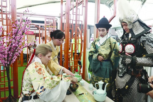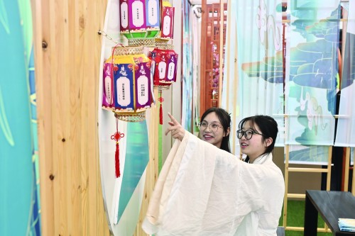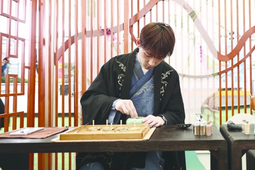 沪上繁花似锦,华服如诗如画。4月11日至4月14日,2024年“中国华服周·沪上繁花”系列活动在上海举行,华服巡游、国风市集、中华文化展演、华服韵典,一系列活动为华服爱好者带来丰富体验。 作为华服周系列活动之一,4月11日至4月14日,国风市集在世博源限时开启。现场不仅可赏传统服饰,体验非遗工艺,国风市集还设置了中华文化展演区,邀请沪上各高校相关社团等带来国风演出。 青年报记者 周胜洁 赏 复原明代宽袖褙子女服 映衬着中华艺术宫,国风市集“中国华服周”字样前,身穿华服、戴着精致头饰的小姐姐们甩袖转圈,留下婀娜倩影。市集摊位错落排开,展示精美华服、国风文创、非遗工艺等。 一套明代的绘有缠枝牡丹纹样的宽袖褙子女服放置在国风市集中东华大学上海汉服版权中心摊位前,这件以红色为主色调的复原品遵循了“图像为证、文字溯源、证源造物、创新复原”的工作原则,以明代女装为蓝本,进行了明代汉服的复原性创作,再现了那个时代的服饰风采。 东华大学上海国际时尚科创中心青年教师蔡钰茹介绍,在中心成立之初就已经完成了从先秦到明清的25套中国历代女性服饰的复原。“这次带来的宽袖褙子女服绘有缠枝牡丹纹样,也应景了中国华服周‘沪上繁花’的主题。” 精美的华服吸引了外籍青年的目光。95后印度留学生泽仁很喜欢中国传统文化,2020年第一次在昆明参加华服活动后,他就喜欢上了。目前泽仁是上海戏剧学院跨文化专业研一的学生,得知世博源有国风市集,他叫上了同班同学鲁洁,一名来自白俄罗斯的姑娘。他们身穿华服,流连于各个摊位前,在这套展示的明代宽袖褙子女服前,他们看着花纹啧啧称奇。 展位上的文创也充满吸引力。帆布包上的图案灵感来源于“山海经”的瑞兽,“宋韵鸣香”系列文件夹则以宋徽宗的花鸟小品为灵感,将宋代文化的韵味融入产品中。蔡钰茹表示,这些充满中国传统文化元素的文创来源于去年举办的首届中国高校原创时尚汉服设计群英会,由创意稿件转化为文创产品,在国风市集与华服爱好者见面,也让传统文化在日常生活中焕发出新的光彩。 感 体验舞彩带龙、马桥文化 马桥手狮舞、金山土布、三林龙狮、颛桥剪纸……这些各具特色的非遗项目都能在国风市集上看到。 一条蓝色的五节龙“躺”在三林龙狮摊位一侧,桌上还有两条供一人舞的彩带龙。身穿铠甲来到国风市集的小陈对舞龙产生了兴趣。“我们三林镇是中国龙狮运动名镇,如今的舞龙已经和狮舞、云牌舞、鲤鱼灯等形式结合,表演形式上也有百米巨龙、布龙、夜光龙、单人龙等。”上海三林龙狮队95后队员徐哲锴介绍道。现场他还教小陈如何舞彩带龙,“一手拿着龙头的绳子,在身体两侧或头顶上画圆圈。”随着徐哲锴有力的动作,彩带龙随风飞舞,颇具观赏性。 古称“筠绣”的三林刺绣有近八百年的历史。三林刺绣摊位上,含有精致刺绣的手机包、口罩、手帕、书签铺陈开来,特别一款围巾上绣的花朵,用到了“抽、拉、雕”技艺,“三林刺绣是一种用绣针引彩线,按设计的花纹在纺织料上刺绣运针,以绣迹构成花纹图案的传统民间手工技艺。它包含70多种工艺、130多种针法。”三林刺绣传承人周老师介绍道,现场还可以用插针手法刺绣“福”字。 马桥镇文体中心文博科负责人贾雪则说起马桥作为“上海之本”的历史渊源和马桥文创产品的故事。“习近平总书记指出,文化产业既有意识形态属性,又有市场属性,所以诞生了马桥的五个系列的文创产品,分别是马桥古文化系列,董其昌系列、紫藤花系列马桥手狮舞系列以及土布系列、让马桥文化成为了‘带得走的马桥文化符号’。”编撰《马桥文化系列读本》,开设体验营,一系列针对青少年的文化宣传活动也让马桥文化得以传承。 “金山共有60项非遗,这次为国风市集带来4项非遗和国风手作,包括土布包、盘扣作品、剪纸作品、钩针玩偶和原创国风首饰。”金山区非物质文化遗产保护中心助理馆员崔竫然介绍道。在金山,青少年也有各种平台了解非遗,“孩子们通过非遗进课堂、跟着非遗去旅行暑期亲子夏令营等,了解土布贴画的发展历史、艺术价值和制作过程。” 玩 集章、互动增加趣味性 国风市集里最有趣味性的无疑是打卡互动。互动体验区共有七个展位,可参与棋艺、投壶、书法、纂香、茶艺、灯谜、对诗等互动。 在服务台领取了“中国华服周”集章册后,身穿宋制汉服的小王第一批体验完七个展位,还换取了国风小礼物。这名大四学生和同学4月9日从浙江到上海,开启毕业旅行。出发前得知有国风市集,她俩带了全套装备而来。六年前,小王已入了“汉服坑”,平时多穿宋制、明制的汉服,她喜欢参加国风市集,不仅能遇到同好,还能买到漂亮的服饰配件。 智能中医脉诊、血压健康评估、心脏健康评估、脑健康评估……在国风市集“太医诊室”摊位前,把脉问诊也有新科技,“华服太医”引导华服“小主”体验四个健康检测项目。其中,脑健康评估仅需90秒即可快速评测高发脑疾病健康风险,将手掌伸入智能中医脉诊设备中,1分钟便能号脉问诊。每个项目几分钟就能完成,并能即时出具综合健康评估报告。 现场负责人介绍,太医诊室包含的线上服务还可以提供快速问诊和健康咨询,能让企业员工快速完成慢病、健康等咨询,通过持续互动,成为自己的第一健