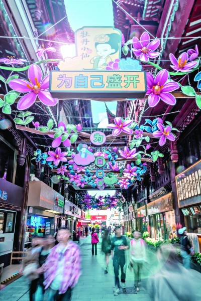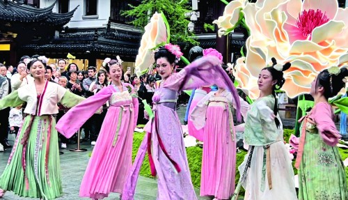 4月12日至4月27日,豫园“节气江南·仲春花朝节”再度回归,漂亮的小姐姐身着汉服开启一场华服秀,把入夜的豫园妆点得分外迷人,作为中国传统文化的集大成,这一回豫园又要出圈了。 青年报记者 冷梅 据悉,2024豫园仲春花朝节,以上古花神赐福百花,福泽大地为引,由牡丹小仙领衔众花仙子,结合三大主题景致,演绎播散真善美的旅程,豫园商城邀请海内外友人共同感受温润细腻的文化场景,国潮新消费之下的深层悦己体验。 入夜时分,今年的花朝巡游从中心广场依次拉开帷幕。华宝楼前,牡丹花海是福地源头,记者看到牡丹小仙身着华服,以“反弹琵琶”的曼妙之姿,为每一位徜徉花海的游人赐福。与之遥相呼应的“耍花朝游艺场”则为春日盛景增添了一抹趣味。 怎么游玩才尽兴?不妨画上一款别出心裁的春日牡丹妆、一幅量身定制的书签画卷、一把独一无二的人生漆扇,耍花招,逛花市,悦己体验的松弛感满满。 今年的豫园花朝节,百年九曲湖心开出巨型牡丹花、华宝楼前还原花朝游艺场、黄金广场妆点蝴蝶花语墙,豫园三大核心区域呈现出“福豫花海”“百花福地”“踏春寻蝶”的不同主题,串联起丰富的感官互动体验路线,引领游人踏上寻真、寻善、寻美的精彩花朝之旅,彰显花朝盛世的东方美学之境。 素以祈福之地著称的黄金广场,被三面巨型蝴蝶花语墙装点,步入式祈福花墙点缀各色花朵,温润祥和,游人可在蝴蝶祈福卡上写下心愿与祝福,捕捉心中善意,获得精神的滋养与鼓舞。 蝴蝶花语墙旁,飞洒的花瓣,散落成一条“富贵花开”祈福之路,一直蜿蜒至九狮楼前,每走一步,便踏足一条富贵花语,步步生花,笑逐颜开。拾级而上,寓意步步高升,花开又富贵。经过二楼连廊,进入“松·艺术空间”的优雅芬芳之境,可寻觅到“空中豫园”“最美盛放露台”,赏400年江南园景,品新中式茶点。 一路探去,九曲桥湖心亭更为惊喜。将宋代墨笔画《百花图卷》中百花绽放之姿,与九曲桥十二节令花图腾相结合,百年九曲桥被打造成花团锦簇、姹紫嫣红的百花福地。湖中花藤舒展,枝蔓环绕,牡丹、杜鹃、栀子、芙蓉等百花绽放,繁花似锦。 240年的湖心亭畔开出一朵巨型牡丹,花瓣纷飞环绕护蕊,花心吐蕊“牡丹小仙”,喻义“为自己盛开”。当夜幕降临,九曲湖面波光粼粼,灯影与花影交织,百年的九曲桥湖心亭与上古的花神牡丹共绘如梦似幻奇景。 湖心亭前,牡丹小仙登临“一叶扁舟”,小舟棹进春波,盈盈青绿,在层次错落的光影中曼舞,展现江南春日之景。 豫园仲春花朝节开幕之际,众多身着华美汉服的友人齐聚一堂,共赴春日好时光。记者了解到,豫园在花朝节期间,还将特邀上海高校的汉服爱好者和喜爱中国传统文化的海外友人,体验汉服变装、非遗画扇、中式插花、踏春游园的中国花朝生活方式。 此次,豫园再度延展“节气江南”这一文化IP,深挖节气文化内容,复原传统节日习俗,在时下年轻朋友喜爱的国潮新场景中,传递东方生活美学的生活方式。