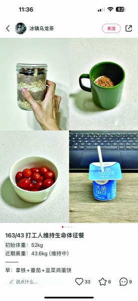 一根芹菜、一个西红柿或者一根玉米加一个鸡蛋,甚至一盒生菜,就是一餐,只要能维持身体正常运转即可……夏日即将来临,“减肥”又成为热门话题,而一种被戏称为“生命体征维持餐”的饮食方式也在最近火了。记者在社交媒体平台上搜索时发现,不少网友纷纷晒出自己的极简风工作餐。小红书上相关帖子超过6万个,微博上相关话题同样超过1亿阅读。不过,年轻人真的可以长期这样吃?专家表示,谨慎谨慎再谨慎,避免过犹不及! 青年报记者 顾金华 省事又健康? “生命体征维持餐”的饮食方式火了! 最近,这种被戏称为“生命体征维持餐”的饮食方式火了。不少年轻人上班时带上一根芹菜、洗两个西红柿或一盒生菜,用这样的食物来充当一天的午餐。 “现在我的午餐非常简单,有时是一根玉米加一个鸡蛋,有时就一根香蕉加两根黄瓜。”市民张琴告诉记者,每天下班路上,她会去超市买上几根黄瓜、香蕉或者番茄,这些便是第二天的午餐。这样的饮食方式已经持续一个多月了,她觉得只要能维持身体正常运转就可以了。 张琴今年26岁,每年夏天都会有“身材焦虑”。偶然在朋友那听说了“生命体征维持餐”这种饮食方式,便决定开始尝试。除了直接食用黄瓜、香蕉、番茄外,有时候她也会用面包卷黄瓜,配上色拉酱,用饭盒装上带到公司。“这样吃,感觉省事又健康。关键是4月份已瘦了六七斤了,马上可以美美哒迎接夏天。” 记者了解到,张琴所说的“生命体征维持餐”来源于欧美,是一种以“冷、素、分量少”为特点的饮食方式,食材单一,主打生吃,少放甚至不放油、盐等,适合年轻的上班族和减肥群体。 方便、快捷、健康,成了“生命体征维持餐”的标签。在社交媒体平台上,众多网友纷纷在分享自己的极简风工作餐,小红书上相关帖子超过了6万个,微博上相关话题同样超过1亿阅读量。 市民晓艳同样向记者分享了她最近的午餐——一杯咖啡加一盒小番茄,或者两根黄瓜加两包坚果等。“这样的简餐摄入碳水少,吃完也不容易犯困”。在晓艳看来,眼下食品的数量充足且品种丰富,一不小心就容易摄入过多,吃喝太多会引发各种疾病,尤其是超重和肥胖成为越来越多年轻人的困扰。“轻食或减少餐次可以让年轻人的生活更加健康,‘生命体征维持餐’作为一种新颖的饮食方式,其存在有其合理性。”晓艳说。 走红的背后 还有年轻人不想再为“吃”发愁 带一根芹菜、洗两个西红柿或一盒生菜,用这样“冷、素、分量少”的食物充抵午餐。不少年轻人说,健康、经济、简单,是他们的用餐需求。然而,记者采访中发现,极简风工作餐走红的背后,还有很多年轻人“不想再为吃啥而发愁了”。 “一般工作日,我通常一天要点两顿外卖。”结束上午紧张的工作后,从事互联网工作的李沁迅速走到楼下外卖柜,取回当天的午餐,一碗小锅米线,花费近40元。 李沁工作的地方是南京西路上的一家商务大厦,周边写字楼林立。她工作所在的商务大厦大门口安装有十多米长的外卖存放柜,每到饭点来来往往都是外卖小哥匆忙的身影。李沁告诉记者,大城市里紧张的工作节奏加上动辄以小时计的通勤时间,没法花更多时间在吃饭上。去哪儿吃、吃什么,经常成为难题。 在大城市,不少年轻人都面临李沁这样的困境。午饭时间紧张、去周边饭店需要排队、用餐价格高,不少年轻人常常为“吃”发愁。为此,有人选择点外卖,也有人去便利店“买个便当,简单对付”。 “外卖看似选择很多,但多油腻、重口味,简单一份套餐或者面条什么都要三四十元。”李沁说,有段时间她也带饭上班。刚开始还想着荤素搭配,坚持一段时间后也放弃了。“上班已经很累了,还要买菜、一早起来炒菜、装饭盒,感觉吃不消……”李沁说,“生命体征维持餐”火了后,感觉这些麻烦都解决了。花上几分钟就能搞定一顿饭,顺便就当减个肥。 不过,也有网友表示,“生命体征维持餐”并不适合所有人,它只能作为一种可选项,是主动选择的结果,而不应该成为越来越多年轻人无奈的选择。“在低碳生活、健康饮食的感召下,不能给‘极简的午餐’找到太多光鲜的说辞。如果有时间、有精力的话,还是应该好好吃饭。”网友“嘻嘻哈哈”说。 ■医学专家 热量低、营养单一,副作用也不少 在坚持了一段时间的“生命体征维持餐”后,这些年轻人如今怎样呢?事实上,不少网友表示“副作用还不少”。 有网友说,“感觉身体没劲了,看到肉眼睛就会发光”“上班的时候感觉人在飘,老板刚布置的任务一转身就忘记了,记忆力极差”。还有网友表示,“瘦是瘦了,怎么连月经都不来了?” “生命体征维持餐”真的健康吗?真的能维持人体能量代谢的正常运转吗?为此,记者咨询了上海市浦东新区公利医院营养科主任医师杨东明。 杨东明告诉记者,2022版的中国居民膳食指南中提到,居民需要摄入谷薯类、畜禽鱼蛋奶类、蔬菜水果、大豆和坚果类以及烹调用油盐5大类食物。其中谷薯类是膳食能量的主要来源,为人体提供大部分的碳水化合物,保持人体正常的基础代谢。对于成年人来说,每天需要摄入谷类200~300g、薯类50~100g;同时,成年人每天需要摄入动物性食物如:鱼、禽、肉、蛋等120~200g,还需保证奶类、大豆和坚果及油盐等摄入;在蔬菜方面,推荐成年人每天摄入量300~500g,建议深绿色蔬菜占1/2,水果200~350g;最后是每天还要补充足够的水