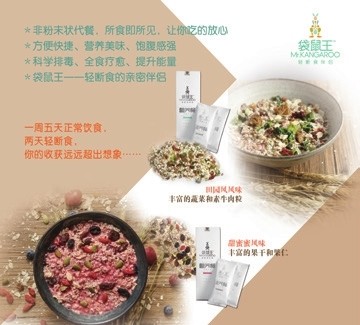 2012年麦克尔·莫斯利医生的一次减肥研究,将他引向断食中寻求答案。终于他发明了针对现代人的全新的生活方法:轻断食。这种轻断食的方法较断食而言,更适合现代人的身体与心灵。 轻断食是指让人回归最自然的饮食状态:每周5天正常饮食,另2天稍加控制。 袋鼠王“海尔兄弟”产品 全食、生机、悦性、有机、纯素是袋鼠王选择食材的五大准则 轻断食期间的食物选择,其实是极为考究的。人体这时是需要摄取食物的全营养纤维、有机食材的活性酵素等,一般人很难辨别这类食材,且无时间一一凑齐这类食物,这也是袋鼠王会出现的原因。最好的营养餐不仅仅从食材与搭配上需要讲究,而且需要有灵性的元素,所以营养代餐会“听音乐”,吸收一些正能量的震动频率。虽然音乐这个“原料”看不出来,却是一种可以尝到的“愉悦”。轻断食不仅改变饮食习惯,也改变了生活方式,让心灵也能达到轻松与超脱,这就是轻断食的根本力量。 袋鼠王就是这样专为轻断食人群所设计的营养代餐,它的出现解决了“轻断食期间吃什么”的大问题,能够让使用者更好地度过轻断食的2日时间。 首先,甜蜜蜜里的成分可以刺激肠道,通过轻断食的途径,长期食用可以保持体内平衡的环境,达到体健心轻的效果。里面含有我们平时不经常吃的一些超级食物,比如:墨西哥奇亚籽、螺旋藻、甜菜根粉、肉桂粉等,能量都非常高,真的是小小的餐包蕴含了大大的能量,可以满足我们一天身体所需的必需营养元素。这些都是我以前做各种料理的时候喜欢用到的食材,现在都融入到了一包营养餐里面,真的是省时方便又营养。 这里不得不提到袋鼠王的独家技术:八种生的坚果种子(其中七种有机)。熟的食材也是低温烘焙不上火,生的可以最大程度保留酵素的活性,且生的种子也是具有能量的。 另外甜蜜蜜里面含有大量深颜色的干果,如蔓越莓、葡萄干等,它含有大量的膳食纤维,所以饱腹感比较强,可以避免吃很多其他的食品。 甜蜜蜜还有位好兄弟叫做田园风,里面含有纤维丰富的九色蔬菜,帮助补充各种微量元素。配方改良后的田园风营养更加丰富均衡,寓意:朴素、温暖、天真……表达了向自然致敬、向田园致敬、向自由致敬的主题。田园风里面的素沙嗲牛肉粒嚼劲十足,受到吃货们的一致好评。 全食、生机、悦性、有机、纯素是袋鼠王选择食材的五大准则;袋鼠王不同于其他代餐产品的细磨成粉,它采用不经过精加工的食品,不仅保存了食物原本的纤维营养、膳食纤维,还锁住了食物本身全部的营养。让消费者清晰地看到每一样食材,真正做到了所食即所见。 唯有爱和健康,不可辜负 更多关于袋鼠王的内容请关注袋鼠王老虎悦食家族 微信ID:yueshiyuekaixin