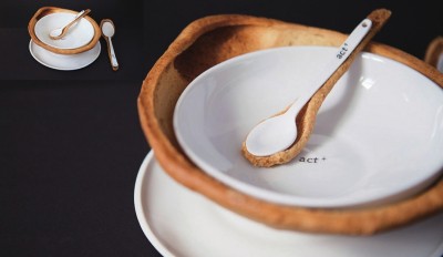 Carmen Buttjer推出了一套6件的餐具,其中3件是瓷器,另外3件是用烘焙的面团烤制而成。这些可以食用的餐具是陶瓷餐具的绝佳副本,面团碗表面粗糙但质感温暖,它跟陶瓷的细洁形成完美的对比。