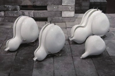 设计师张建和在北京出生长大,对北方的锅碗瓢盆尤为熟悉。他把瓢的形式引入餐具设计,他设想对若干个单球和双球的葫芦进行角度不同的切割,便产生了一系列大大小小形状各异的碗碟。他还为餐具设计了存放架:餐具不用时,又可恢复葫芦原来的形状。