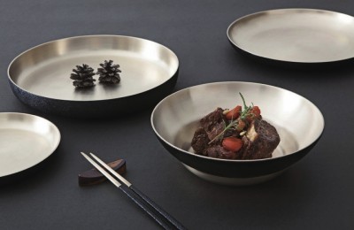 DaMoon餐具由“满月”和“新月”两个系列构成。“满月”系列拥有饱满的曲线,由一只大碗和两只不同尺寸的盘子构成。“新月”系列更现代和简洁,更适合盛放和展示现代的菜肴。餐具使用的是韩国的传统材料Yoogee(一种铜锡合金)和Ottchil(一种漆料),前者具有优越的保温性能,后者让餐具显得更具有传统的优雅感。