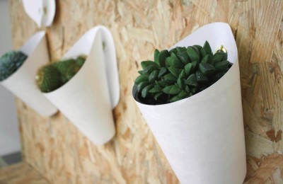 这是一款超级简单的花盆容器。将一片薄薄的片儿轻轻卷至两头对称的小孔处,便大功告成能装上花盆挂在墙上了。这个设计是在一个非常简单的几何形体上开了对称的两个小洞,设置好后的花盆架可长期适用于室内外。