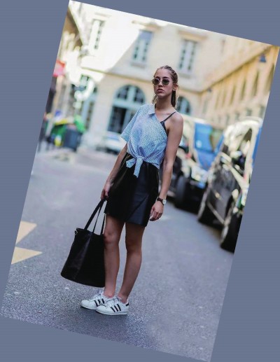 单肩衬衫与吊带上衣的搭配,魅惑得恰到好处。