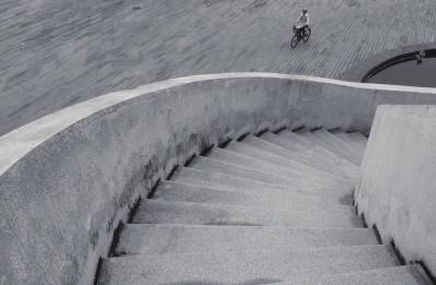 A:人作为城市的建造者同时也是城市中的一部分,人是主宰同时也是“附属品”。我喜欢用镜头捕捉在城市空间中走动的形单影只,此时的人类被作为定格的“活体雕塑”,同时也成为了城市园林景观的一部分。