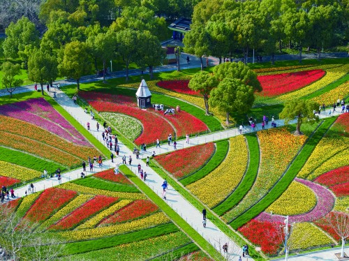 园方将这50万株郁金香主要分布在公园内的三处标志性景点,即罗马广场、北门广场和南国风光,作为最佳观赏点。这三处观赏点以性状各不相同的郁金香为基础,再依据花色、花期、株高等特性进行色块的调整,搭配不同风格的设计主题,呈现出形色各异的郁金香花海,此等美景足以让市民游客陶醉其中、流连忘返、拍照打卡。