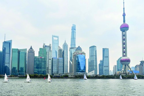 阳光透过云层,江面东风正劲,2024上海帆船公开赛开幕式昨天在上海国际客运中心码头举行,由15条J80帆船、8条ILCA6帆船及3条双体帆船组成的巡游船队在陆家嘴“三件套”的映衬下,破浪争流。