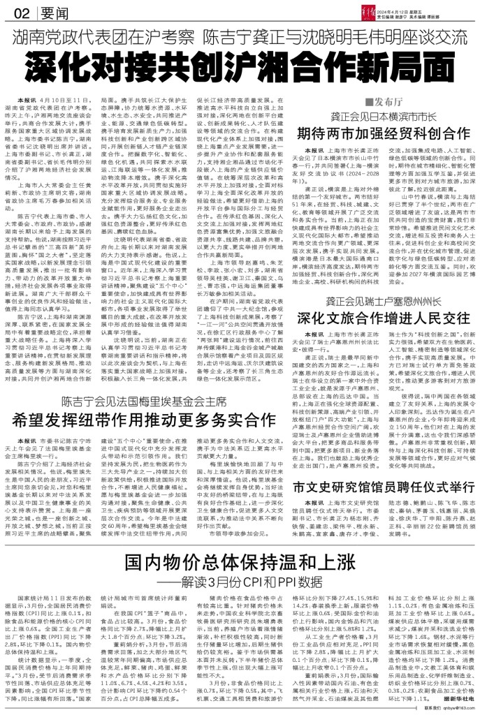 深化对接共创沪湘合作新局面