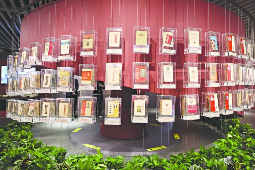 本次展览充分依托中共一大纪念馆丰厚的革命文物基础,共计展出各类展品452件,其中文物文献267件,包括一级文物13件,二级文物21件,三级文物56件,其他等级文物及文献资料177件,力求全维度展现马克思主义中国化时代化的伟大理论成果与实践成就,并将首次在党的诞生地展出中山大学图书馆珍藏的马克思《论波兰问题》笔记手稿。一面书墙很是显眼,这是围绕马克思手稿背后,矩阵式陈列了140本马克思主义中国化时代化理论成果,为观众呈现一次“源与流”的命运交汇。