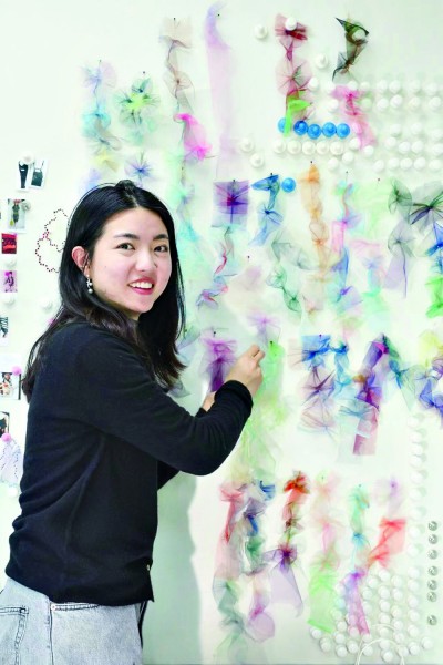 我对于设计风格有着自己的坚持和追求。在读书的时候,我就非常想探索自然与人体的界限,以及人与时装之间那些难以言说的联系。我的毕业作品“Airflip”就是通过柔软面料和金属结构的结合,表达了我对自然的思考和对人体的理解。我甚至花了好几个月的时间,研发出了一种全新的面料编织技术,我叫它“Air-weaving(空中编织)”。这种技术可以用不同宽度的缎带来编织出形态各异的面料,创造出独具品牌特色的衣着体验。这种编织方式很特别,因为它是3D的,所以编出来的面料可以立起来,也可以展平。