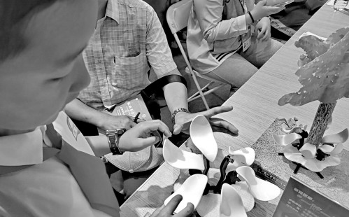 记者在成果展上看到不少很有潜力的作品,例如上海外国语大学附属外国语中学东校九年级的崔芷宁同学发明的盲童绘本,就是在绘本上嵌入真标本,可以让盲童触摸标本,同时配以盲文和语音介绍,甚至还有香味放置盒可以散发出标本的气味。崔芷宁接下来还打算定制标本,这样就可以把绘本做得薄一些,便于携带。