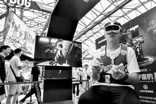 市民在ChinaJoy现场试玩VR游戏。青年报资料图