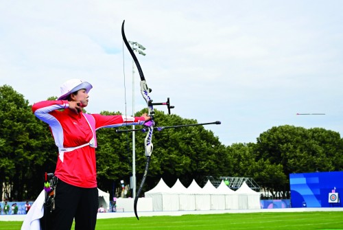 当日上午,巴黎荣军院上空晴空朗朗,64名女子射箭运动员在这处历史建筑旁展开争夺。中国队派出杨晓蕾、安琦轩、李佳蔓3人出战女子个人排名赛。