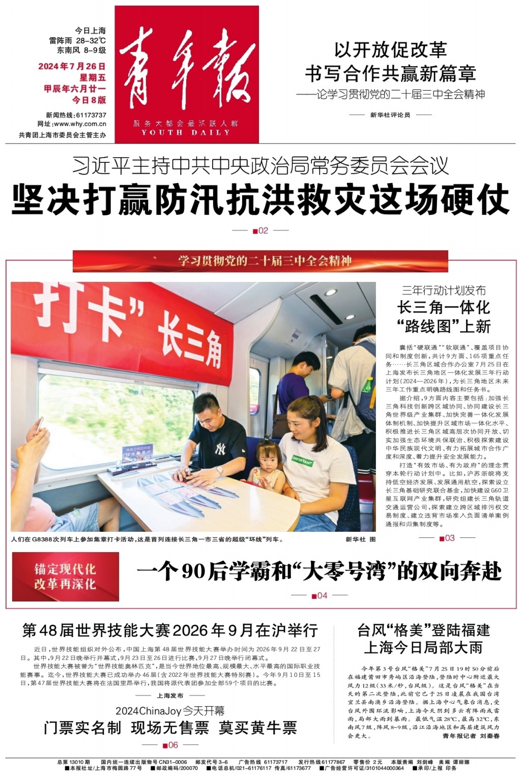 A01 头版 A02 要闻 A03 学习贯彻党的二十届三中全会精神 A04 锚定现代化 改革再深化 A05 2024爱心暑托班 A06 文化 A07 乐业·动态 A08 2024巴黎奥运会特别报道