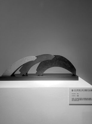 艺术家许运佳的《山水之间》用的是汉白玉材质,以极其简约的语言表现东方山水意象。雕塑造型内敛、优雅,横看成岭侧成峰,有流水潺潺之感,似长江之水润泽万物。作品内部孔洞又有如光线交织其中,与周围环境相呼应,让人如置身山水,营造出既传统又现代的审美意境。