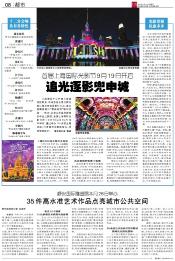 上海展览中心外墙上演建筑投影秀、申城首张全景光影地图汇集百余处夜景打卡点、重点商圈将推出“票根经济”联动活动……昨天,记者从市政府新闻发布会上获悉,首届上海国际光影节将于9月19日至10月18日举行,通过举办100余项主题活动,打造城市形象新窗口、夜景旅游新IP。