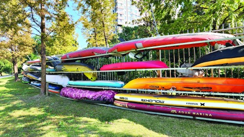 调侃归调侃,这个问题必须得解决。但是放哪里好呢?居民区党总支就“船怎么放”问题专门听听老百姓的声音。有的居民说小区里看到那么多船,反而凸显了“水岸文化”。但更多的还是认为要进行统一管理,绝大多数船主都认为可以用众筹资金的方式购买几个专门存放皮划艇的架子,让大家平摊费用,一个架子大概两三千块,可以放6艘船。