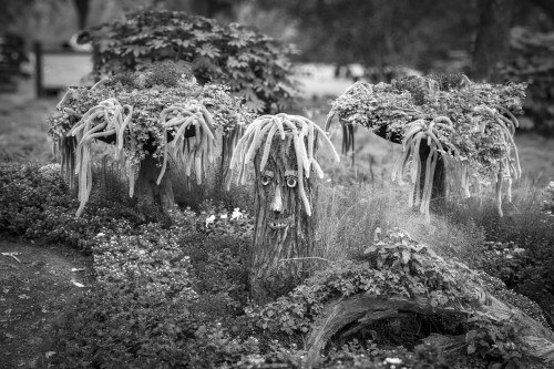 被台风“贝碧佳”吹倒的树木也成为了风景的一部分。公园以倒伏树木为原材料,制作了兔子、小猪、小马等道具,融入菊花景点之中,还创作了树干、树根、树枝等园艺景观,将各种花草种在里面。