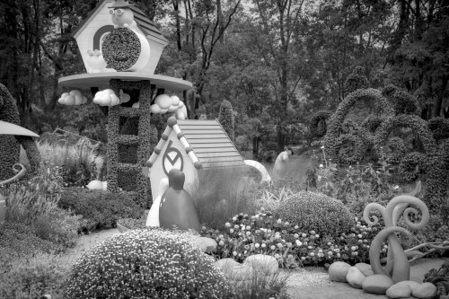 室外景点展区位于原花艺馆位置,以森林为背景,搭建了8组室外景点,它们或者是绿雕的形式,或者是一个花园,展现了人民城市建设发展取得的丰硕成果和日新月异的城市变迁。