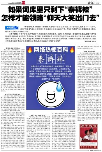 “‘网络梗’的泛滥,看似简洁直接地传达了某些思想情感,实际上却让使用者失去了独立思考和独特表达的能力。受认知能力制约,青少年往往无法正确区分‘新出现的事’与‘新事物’。这就难免会发生把网络平台上新出现的一些本质落后的旧事物当作新事物来追捧的现象。”对于“网络梗”,上海海洋大学外国语学院中文教学部教师滕新贤认为这个问题值得重视,需要全社会共同努力。