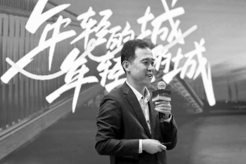 新微企业管理有限公司总经理张波在会场发言。青年报记者 施培琦 摄