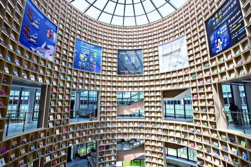 作为闵行城市文化新地标,大零号湾图书馆以“山水书院”为主题,外观设计融合了标志性的竹简元素,而内向的玻璃面则如同一幅打开的长卷,寓意着读者将在山环水抱中开启美妙的阅读旅程。馆内智慧阅读、悦享时光、绘本天地、湾区之光、艺苑雅阁等16个主题阅读服务空间全部对外开放。