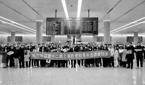 第十二批中国(上海)青年志愿者赴老挝服务队的队员们载誉而归。青年报记者 吴恺 摄