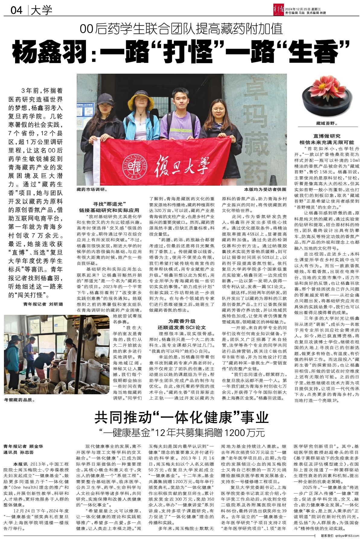 12月24日下午,2024年度“一健康基金”颁奖典礼在复旦大学上海医学院明道楼一楼报告厅举行。