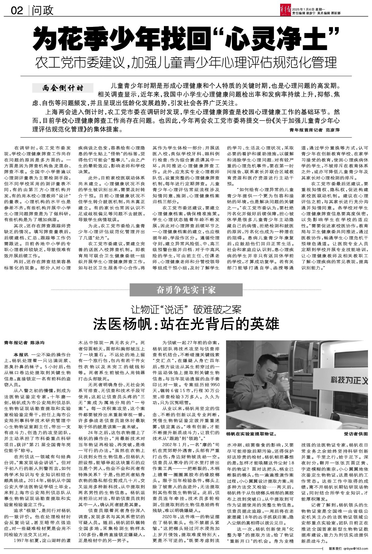 从业以来,杨帆用坚定的信念、不断的创新以及专业判断,凭借生物物证鉴定拨开重重迷雾,锁定真凶。“唯有创新,才能不断提升新质战斗力,让我们的技术从‘跟跑’到‘领跑’。”