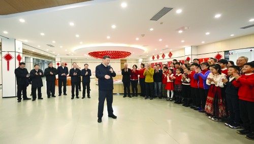 社区党群服务中心里,一些社区居民在写春联,孩子们编着中国结。习近平来到他们中间,不时赞赏他们的作品,勉励他们更好传承弘扬中华优秀传统文化。习近平还饶有兴致地欣赏了社区退休人员表演的笛子合奏曲。他深情地对大家说,过好春节意味着新一年有一个好的开端,家家户户幸福生活、老老少少开心快乐,就是人间美景。我们要一起努力,让这美景越来越靓丽。