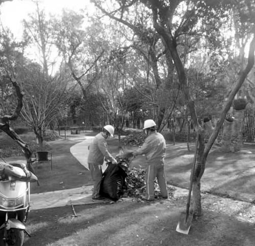 徐房绿化养护青年突击队队员们开展绿化作业。