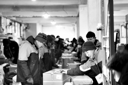 快递青年正在加班加点分拣。