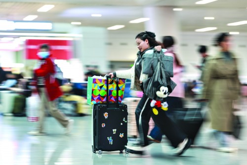 在北京火车站,南来北往的旅客,背着行囊,带着收获,去往家的方向。