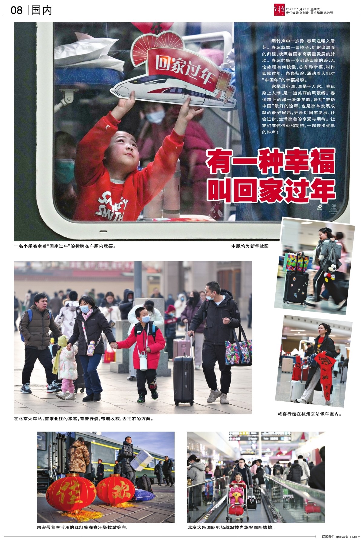 爆竹声中一岁除,春风送暖入屠苏。春运就像一面镜子,折射出温暖的归程,映照着国家高质量发展的脉动。春运的每一步都是回家的路,无论旅程有何快慢,总有种幸福,叫作回家过年。条条归途,涌动着人们对“中国年”的幸福期盼。