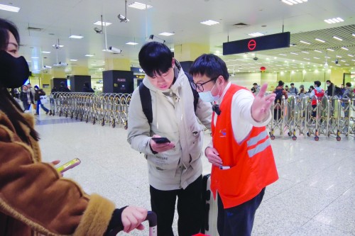 能看到那么多乘客顺利回家,赵佳丽的心里很开心。“每一年春运看到乘客开心的笑容,能够让他们乘上地铁,节省更多的时间和出行费用,实现了我们作为志愿者想要达到的目的。”