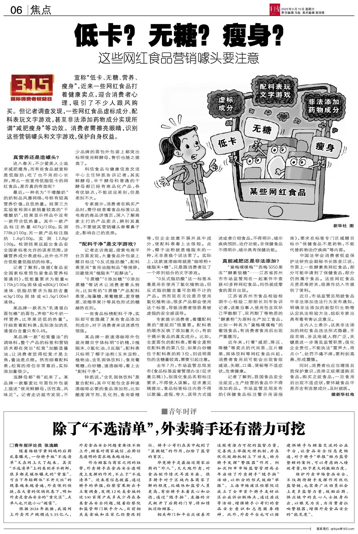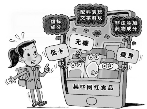 宣称“低卡、无糖、营养、瘦身”,近来一些网红食品打着健康卖点,迎合消费者心理,吸引了不少人跟风购买。但记者调查发现,一些网红食品虚标成分、配料表玩文字游戏,甚至非法添加药物成分实现所谓“减肥瘦身”等功效。消费者需擦亮眼睛,识别这些营销噱头和文字游戏,保护自身权益。
