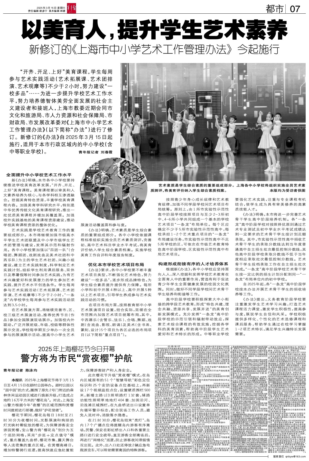 本报讯 2025年上海樱花节将于3月15日至4月15日在顾村公园举办。顾村公园以“园中园”的方式,圈围了原先2号门附近的森林休闲运动园区域进行焕新升级,打造成占地约16万平方米的“樱花岛”。对此,上海宝山警方根据今年“夜樱”的区域范围和赏樱时间提前进行部署,做好“护花使者”。