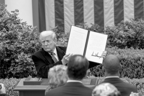 特朗普在首都华盛顿白宫展示签署后的关于所谓“对等关税”的行政令。新华社 图