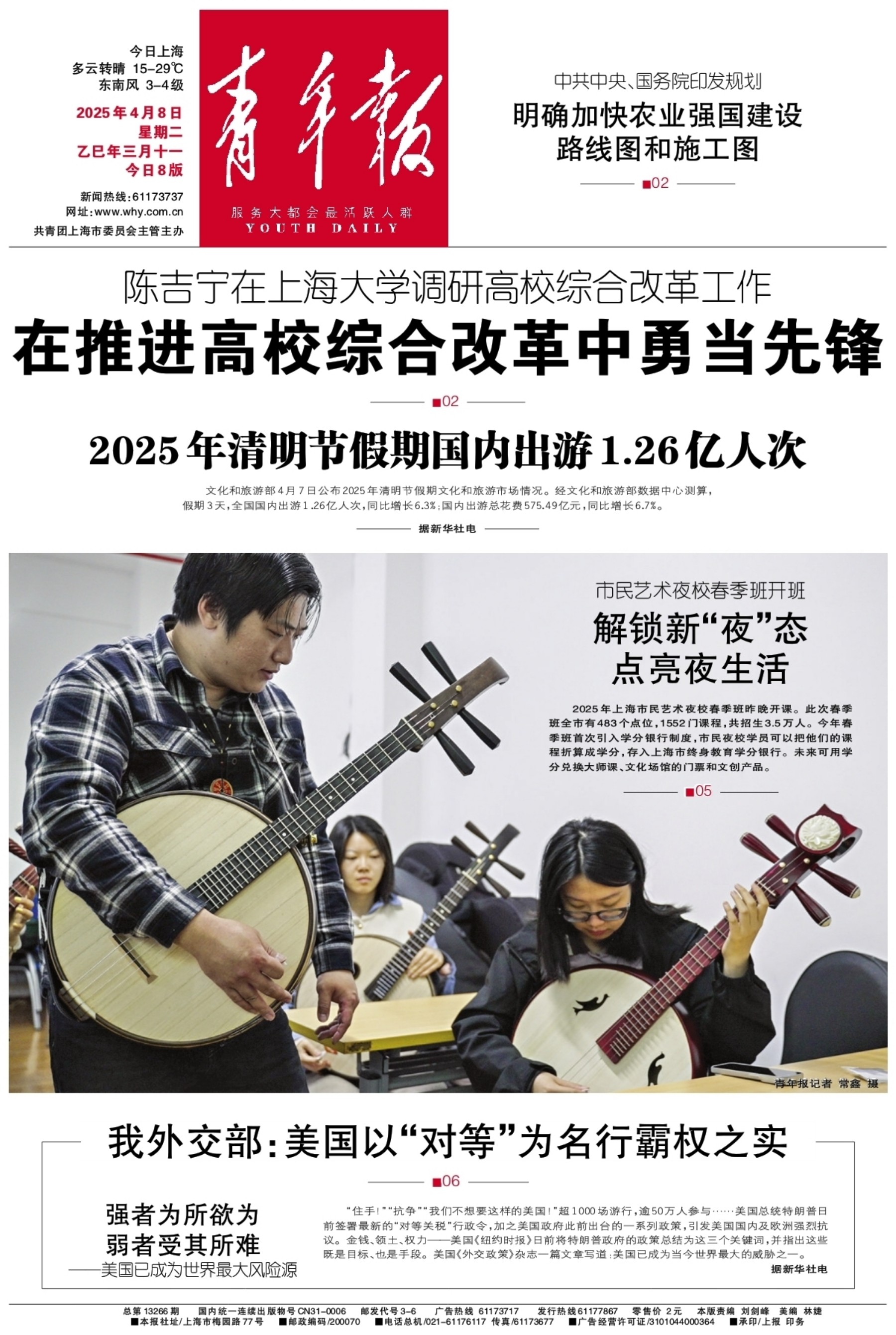 A01 头版 A02 要闻 A03 校园 A04 青年 A05 都市 A06 天下 A07 创·视野 A08 文化