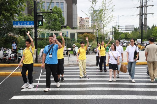 “影子志愿者从来不是为了替代他们前行,而是用无声的陪伴,给予他们独立探索前方的支持。”华东师大特殊教育学系2023级本科生李邠瑜介绍,现场,志愿者遵循“默默守护,从不干扰主动探索,时刻关注需求,及时提供贴心服务”的原则做好无声的守护。许多学员从最初不敢独立出行,到最终掌握盲杖技巧,这份勇气上的蜕变,将助力他们走向更广阔的未来。