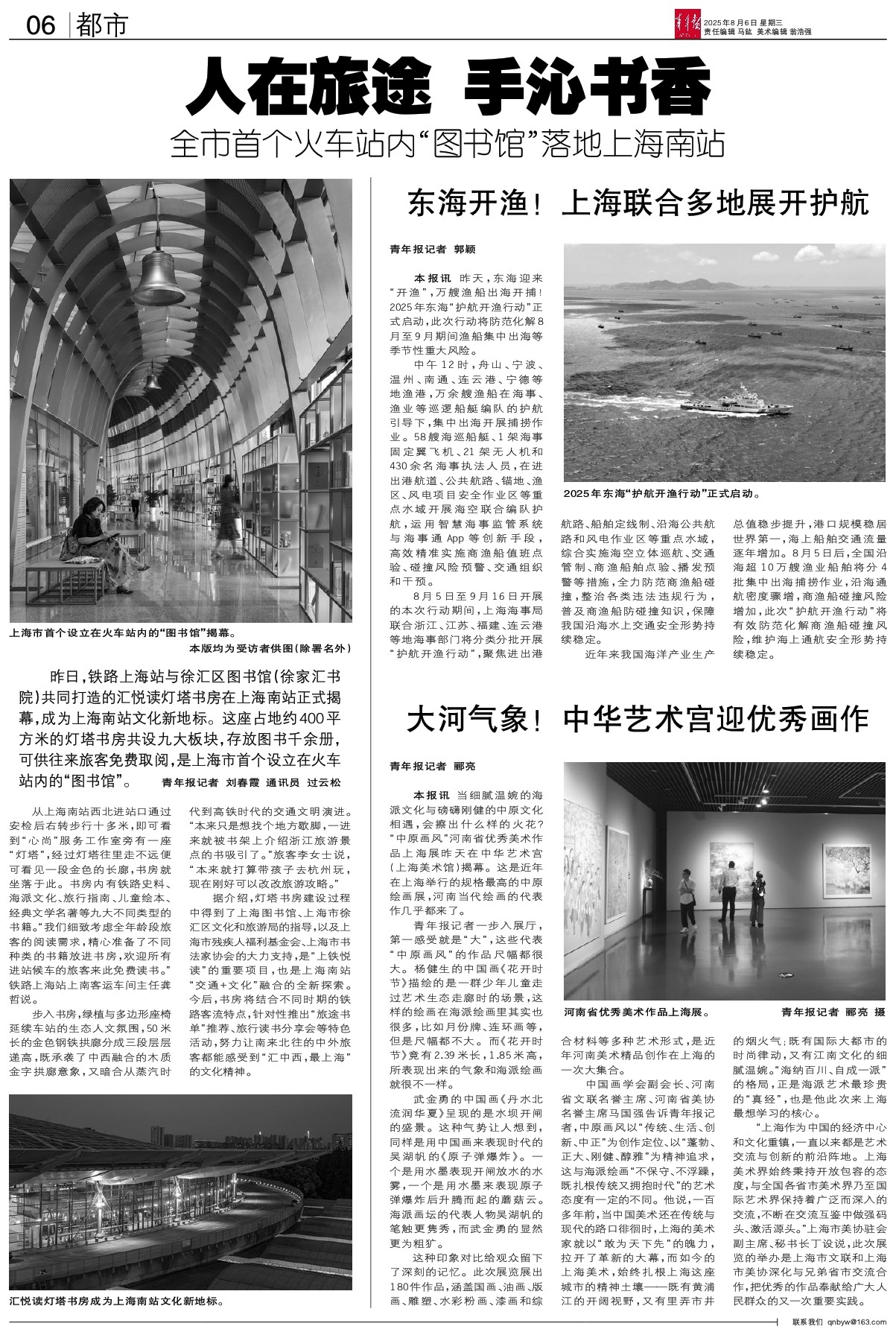 中国画学会副会长、河南省文联名誉主席、河南省美协名誉主席马国强告诉青年报记者,中原画风以“传统、生活、创新、中正”为创作定位、以“蓬勃、正大、刚健、醇雅”为精神追求,这与海派绘画“不保守、不浮躁,既扎根传统又拥抱时代”的艺术态度有一定的不同。他说,一百多年前,当中国美术还在传统与现代的路口徘徊时,上海的美术家就以“敢为天下先”的魄力,拉开了革新的大幕,而如今的上海美术,始终扎根上海这座城市的精神土壤——既有黄浦江的开阔视野,又有里弄市井的烟火气;既有国际大都市的时尚律动,又有江南文化的细腻温婉。“海纳百川、自成一派”的格局,正是海派艺术最珍贵的“真经”,也是他此次来上海最想学习的核心。