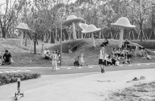 浦东新区的锦绣文化公园位于地铁7号线锦绣路站出口,近期刚刚完成焕新改造,43万平方米的公园内,处处可以找到儿童友好的空间。星河书阶上,八大行星雕塑点缀其中,邀请每一个小朋友在竹林、星光与文字的共振里,拾取属于自己的浪漫星座。儿童沙坑旁,贴心地设置了儿童专用洗手池,彩色卡通水龙头增添童趣,细节处尽显对儿童的关怀。一旁的滑梯上,小朋友们欢笑着飞驰而下,仿佛置身儿童乐园。