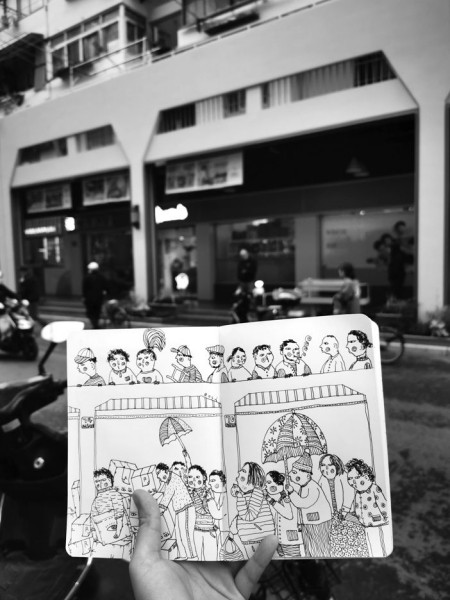 因此,在看“上海都市传说”系列插图时,总能让人联想起《清明上河图》的鸟瞰式全景构图。但细看之下,郭文媛所关注的时空重叠交织,仿佛信步在历史长河里,而不独属于某一瞬间。