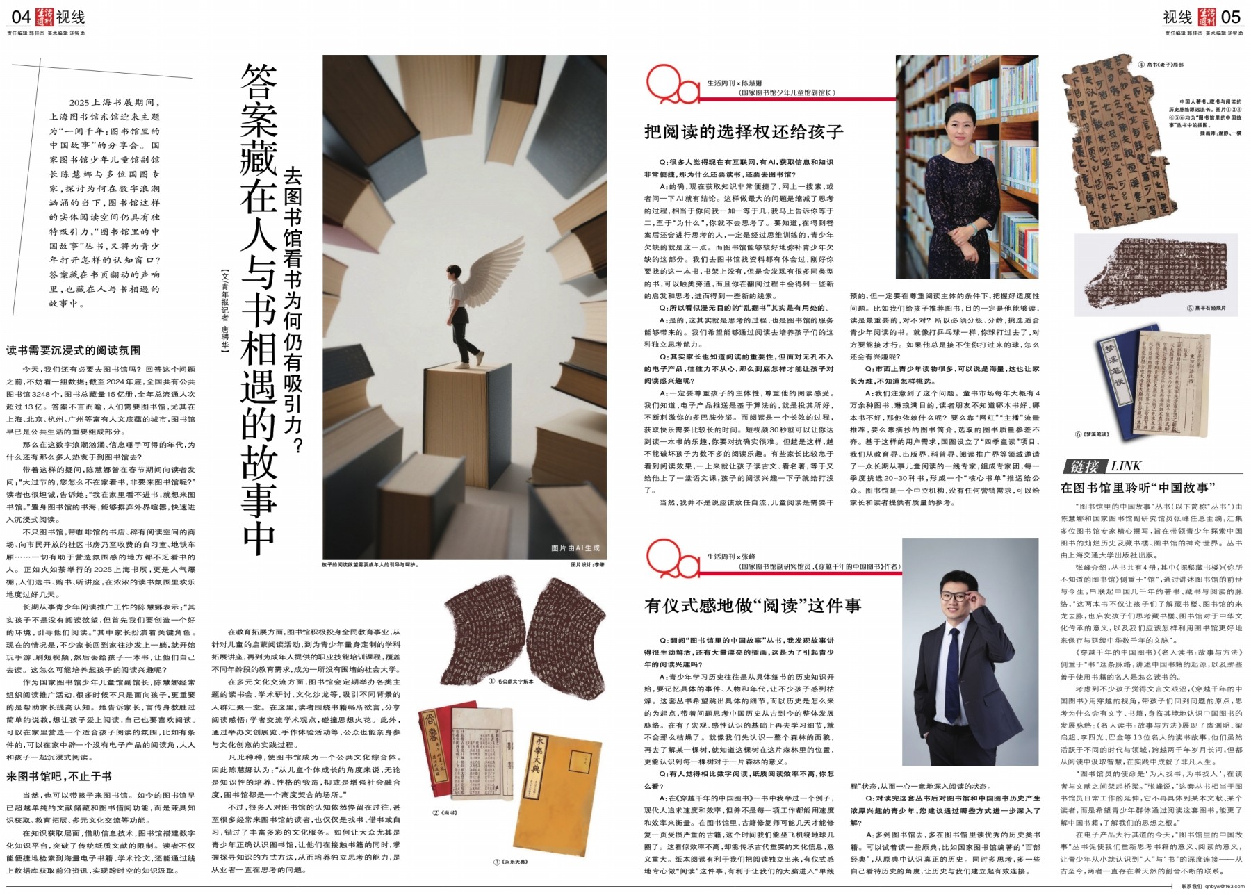 2025上海书展期间,上海图书馆东馆迎来主题为“一阅千年:图书馆里的中国故事”的分享会。国家图书馆少年儿童馆副馆长陈慧娜与多位国图专家,探讨为何在数字浪潮汹涌的当下,图书馆这样的实体阅读空间仍具有独特吸引力,“图书馆里的中国故事”丛书,又将为青少年打开怎样的认知窗口?答案藏在书页翻动的声响里,也藏在人与书相遇的故事中。